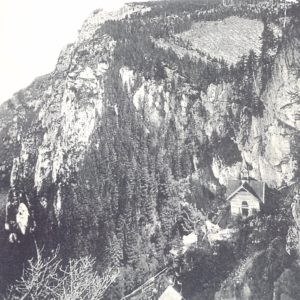 An derselben Stelle stand in der Mitte des 19. Jahrhunderts ein Holzkreuz, später eine kleine Kapelle. Das neue, 1882 eingeweihte Kirchlein, erbauten vier Breitenauer Zimmerleute nach den Plänen des Grazer Architekten Mircovic. 1875 entstand daneben auch eine Gastwirtschaft, die aber abgetragen wurde nachdem 1951 ein Felssturz großen Schaden anrichtete und die gesamte Anlage neu platziert werden musste.